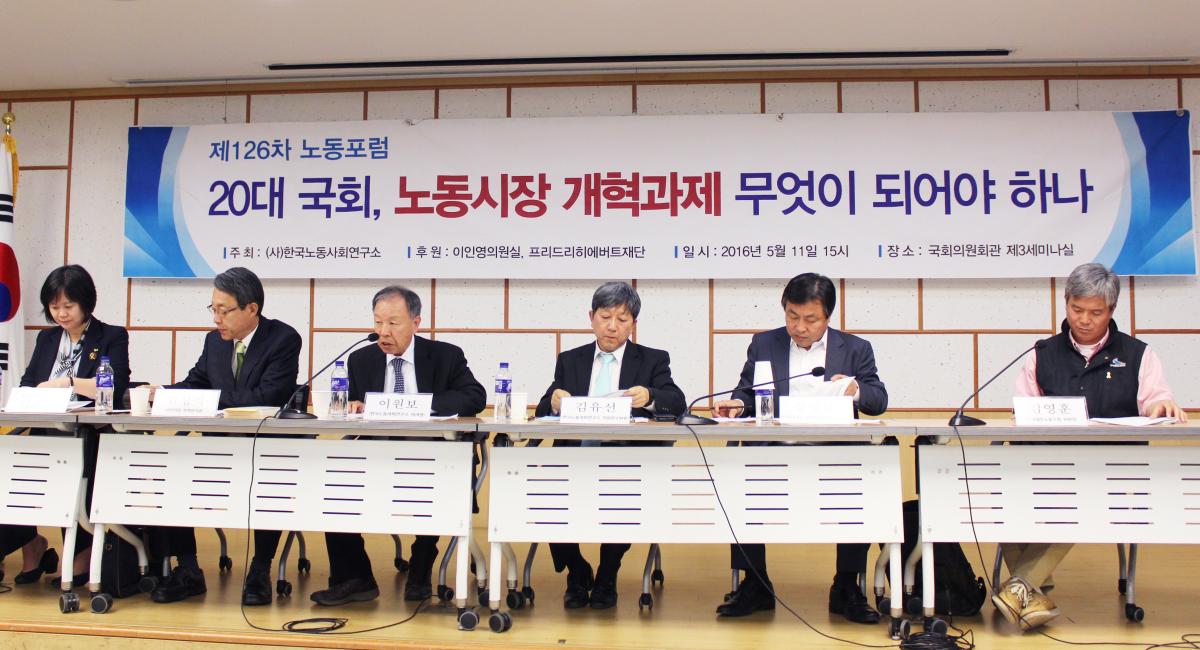 포럼의 주제는 '20대 국회, 노동시장 개혁 과제 무엇이 되어야 하나?'입니다.