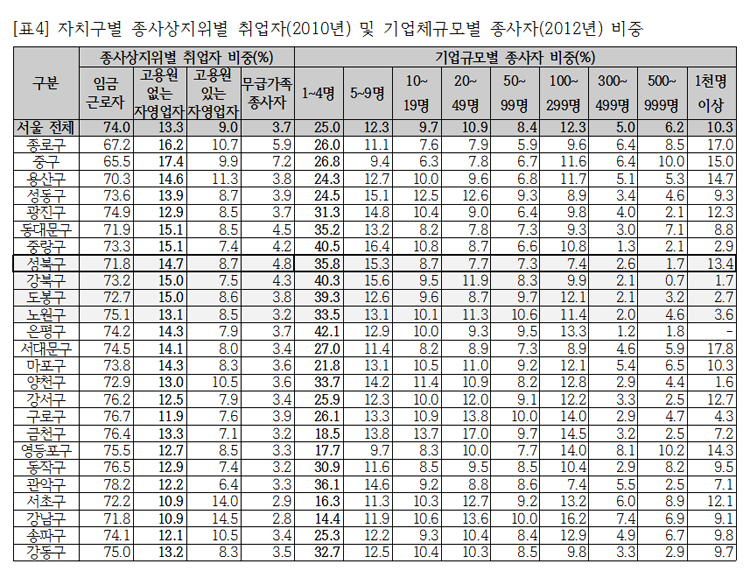 나. 소기업 및 소상공인 비중이 상대적으로 높은 성북구