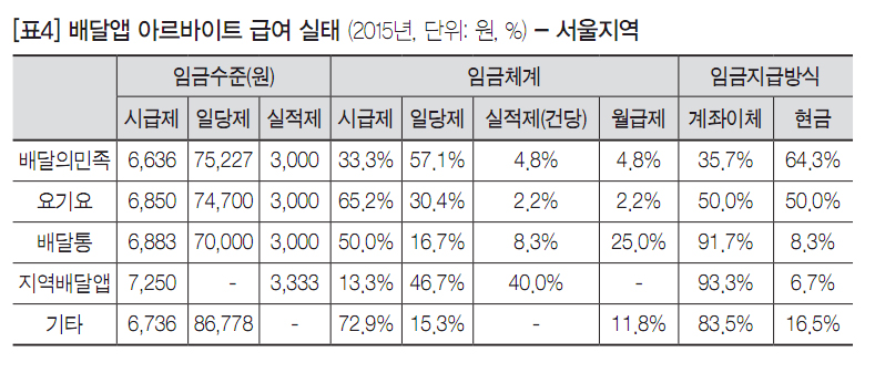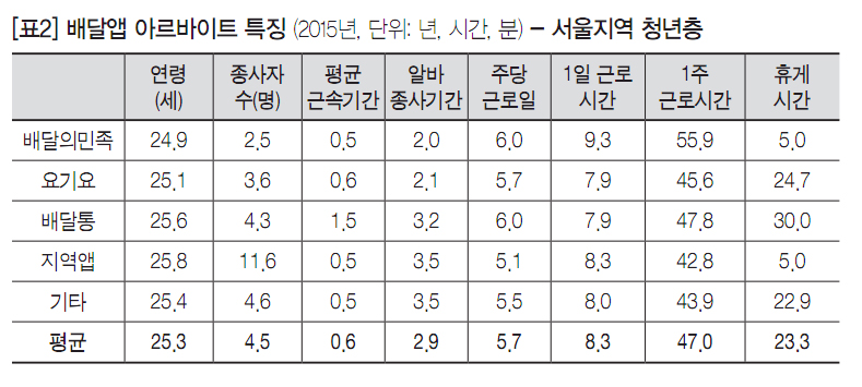 배달앱 아르바이트 노동실태와 문제점 - 서울지역 청년층