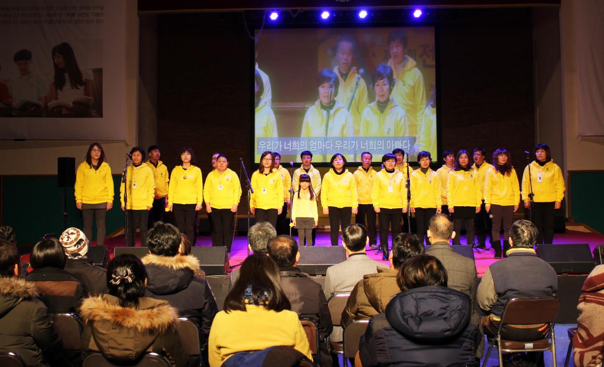 노래를 마친 유가족들은 “때때로 포기하고 나라를 떠나고 싶었는데 가방에 노란 리본, 노란 팔찌를 차고 다니는 많은 학생들을 보며 이 나라의 희망을 보았다”며 “이 희망이 이대로 잘 자랄 수 있도록 선생님들의 역할이 너무 중요하다. 진실이 밝혀져서 책임자가 처벌받고 안전한 나라에서 우리 아이들을 키울 수 있는 그날이 오도록 함께 해달라”고 당부했다. 참석자들은 소매로 눈물을 훔치면서도 유가족들에게 그 어느 때보다 열렬한 박수와 호응을 보냈다.
