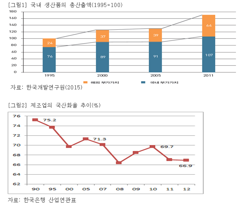 중간재의 과도한 해외 의존과 원자재 대부분을 수입하는 취약한 경제구조로 국내 부가가치가 낮아지고 있다.