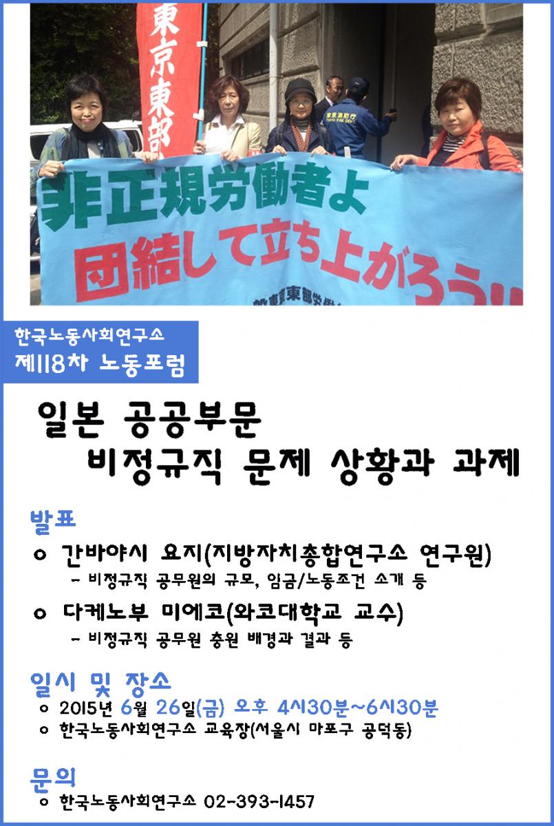 제118차 노동포럼 '일본 공공부문 비정규직 문제 상황과 과제' 개최(06.26)